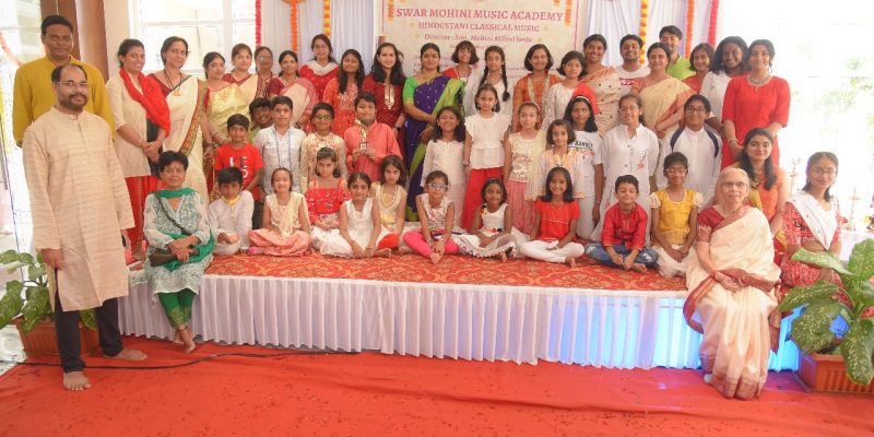 The academy teaches the Mewati gharana style, known for its emotive expression and intricate techniques. The academy engages its students with regular events like the Trimasik Sabha, Saptahik Sabha, and the revered Gurupurnima. Morning Riyaz sessions instill discipline and dedication among the students. Vidushi Mohini Joshi provides her students with opportunities to participate in various performances and competitions on different stages and events. Through these experiences, she helps groom their singing skills.